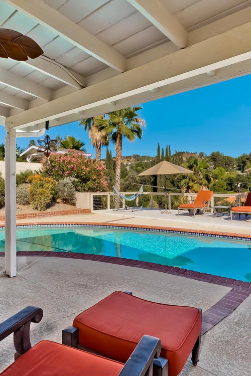 Smashing Mulwood view home in the goldilocks zone. Walking distance to all three award winning schools of Calabasas and the LVUSD. Boasting 3 bedrooms plus 2.5 baths. An eat in kitchen, formal dining room, den with wet bar and step down living room. A master bedroom suite with walking closet and changing area. Two more generous bedrooms that share the second bathroom, a powder room at the entrance, along with a laundry room off the kitchen complete the interior of this feel good home. You will enjoy the beautiful views of the hills from the covered patio and large deck. A kidney shaped pool and fire pit makes this yard a serene paradise day or night. Upgraded doors, recessed lights, two car garage with drive through door to side yard and more..You are just minutes to the Commons of Calabasas, Restaurants, theaters and the Village at the Warner center. Walk off into some of the best hiking around and just minutes to some of L.A's most beautiful beaches. There is no place like home right here in Calabasas!